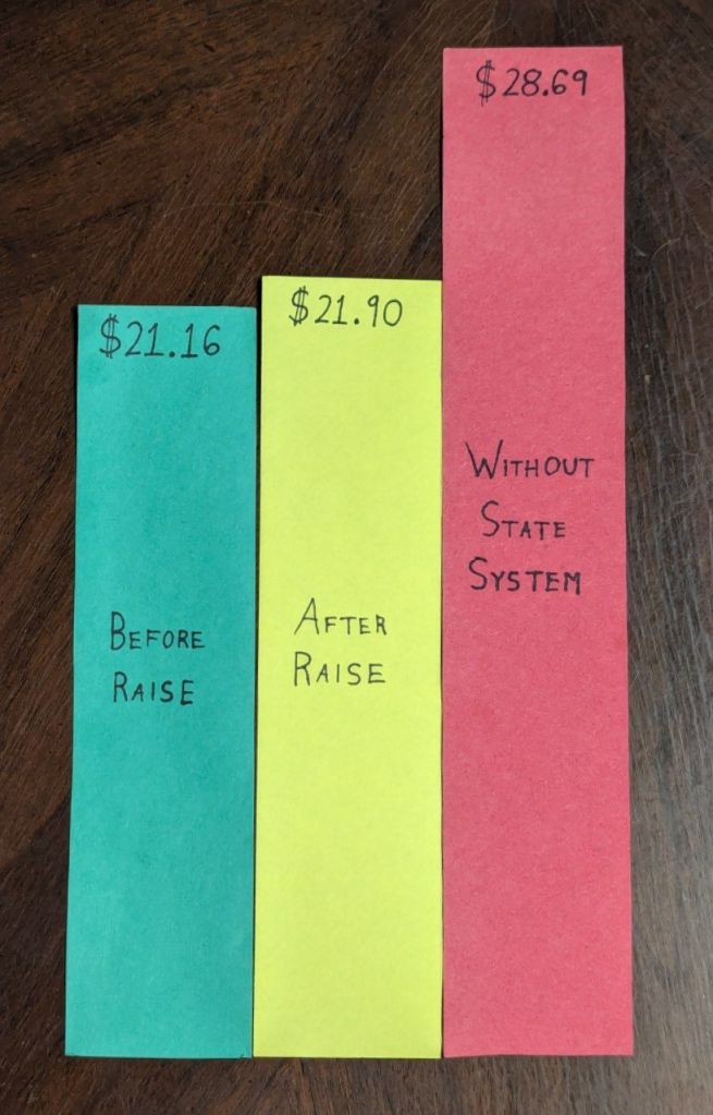 I don’t know about you but if I was supposed to get a raise of $7.53 and instead got 74¢ I would call it a bad raise.