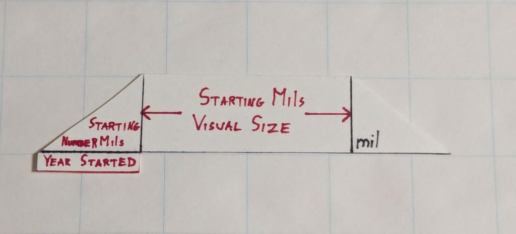 The size of the mils is also visually represented by how wide the top of the piece is.