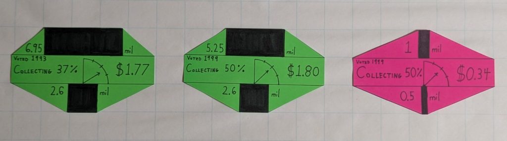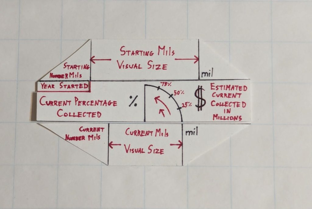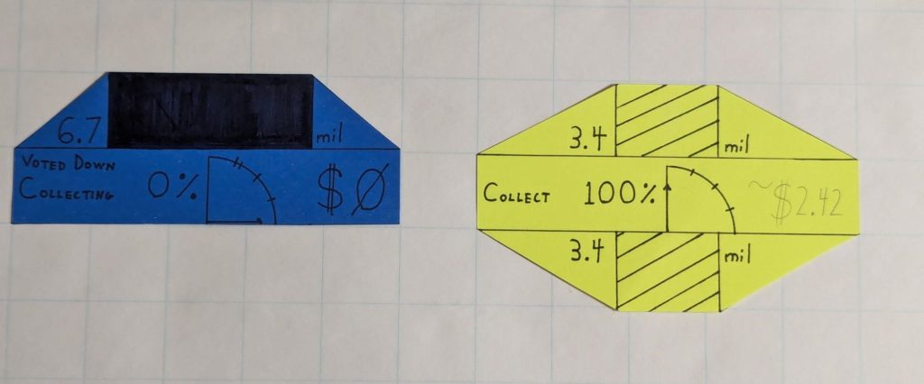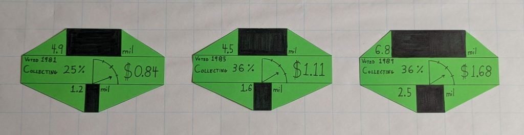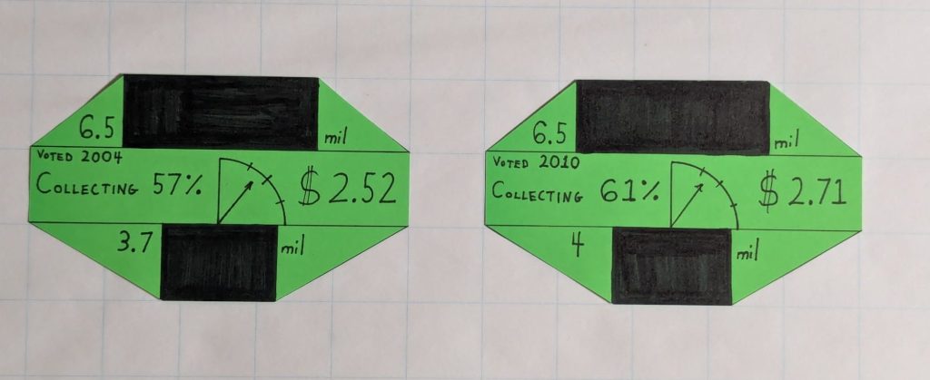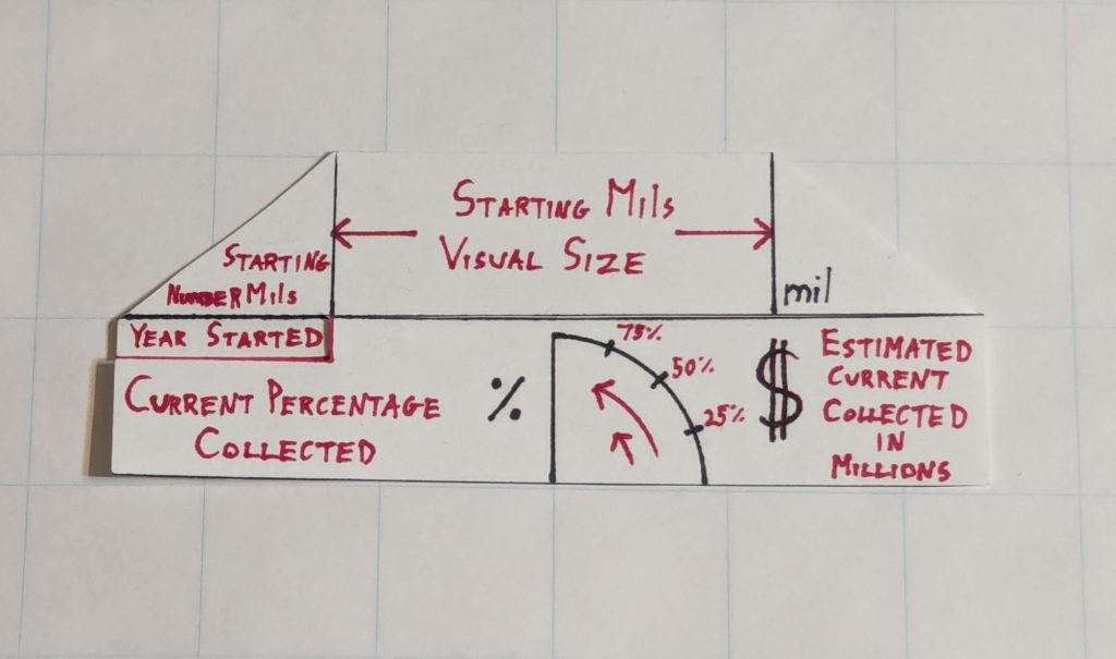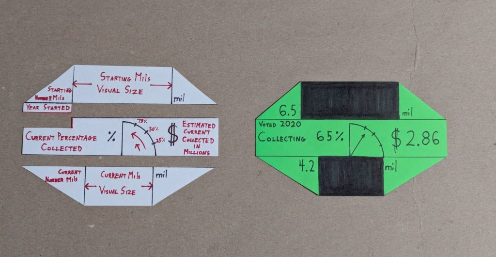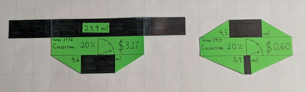 At the left is the current effective mils of the tax rate and in the center the width shows the same thing visually.